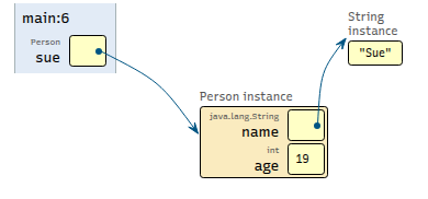 Person sue = new Person("Sue", 19);